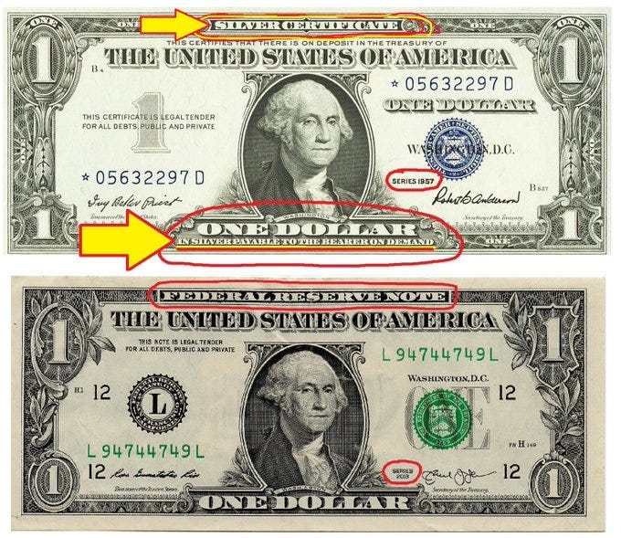 1. I did not vote to establish the private Federal Reserve in 1913. I was not born until many decades later.2. I did not vote to change our real silver coins (“money”) for copper coins painted silver. I was 8 years old in 1965.3. I did not vote to change our Silver Certificate Dollars (which could be exchanged for actual physical silver) to pure fiat Federal Reserve Notes. I was 11 years old in 1968.4. I did not vote to “close the gold window” in 1971. Nixon did that. I was 14 years old.What happened to all Americans was the planned and structured debasement of our federal reserve currency (it’s not real money). The 4 steps listed above allowed the politicians of both parties to print FRNs with no limits at all, always diminishing the purchasing power (”wealth”) of the beleaguered middle class.